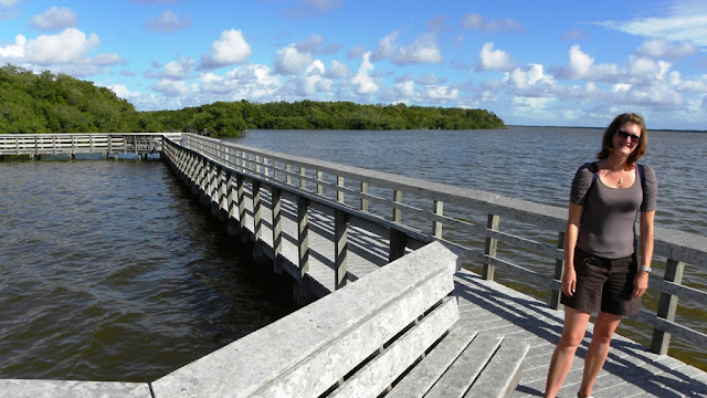 We particularly liked the lonely trees and natural white wood constructions on the banks of the pond. On one of my pictures we captured a good reflection of the clouds in the water. At West Lake you have the opportunity to rest and enjoy a picnic at one of the tables near the water. Some people spend a few hours here watching birds. We decided to have a walk on one of the trails. This area is a mix of fresh and salt water. If you are lucky you could spot a crocodile but we didn't see one. Because of the salt the roots of the mangrove trees look elevated. A white heron looks at us from under a bush. Please drive carefully so that you don't kill any wildlife, we saw a SUV with his boat trailer speeding and killing such a beautiful heron, he didn't even slow down. Scandalous.